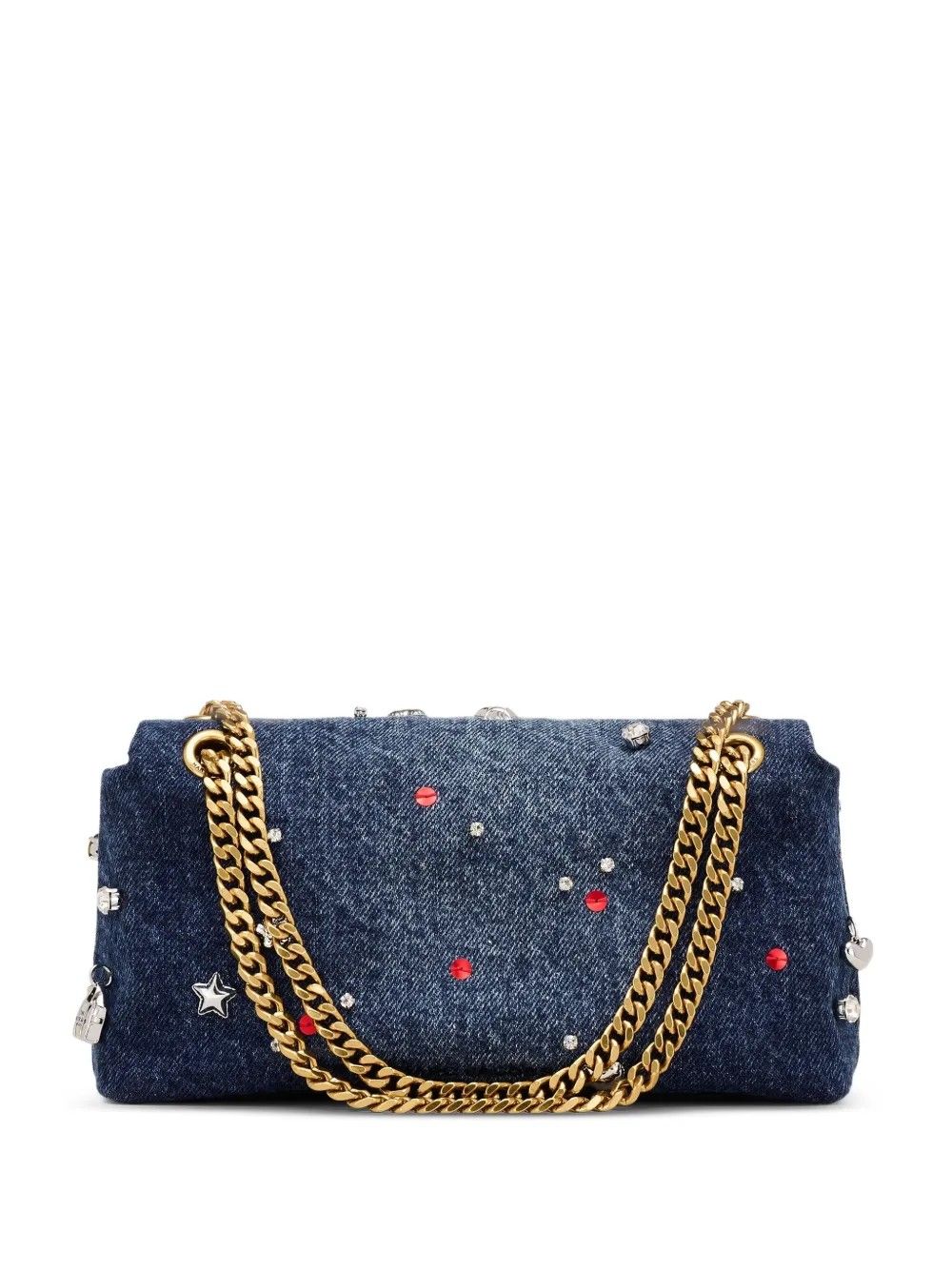Discover the timeless uniqueness of the Marc Jacobs crossbody bag, a perfect accessory for those who love to stand out. Made from denim with eye-catching details such as charms and appliqués, this bag combines urban style with practicality.