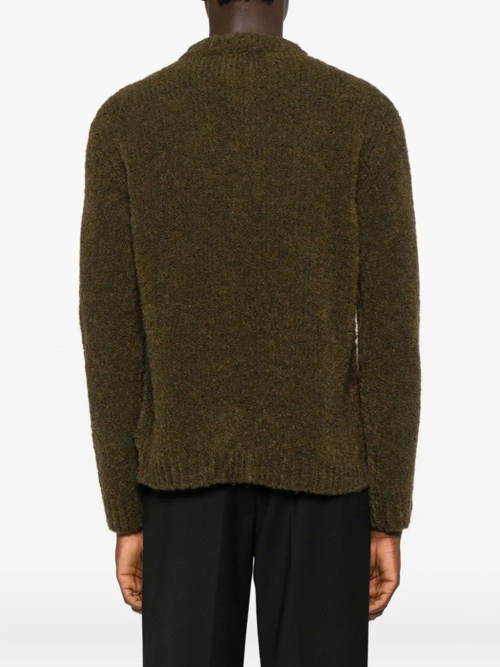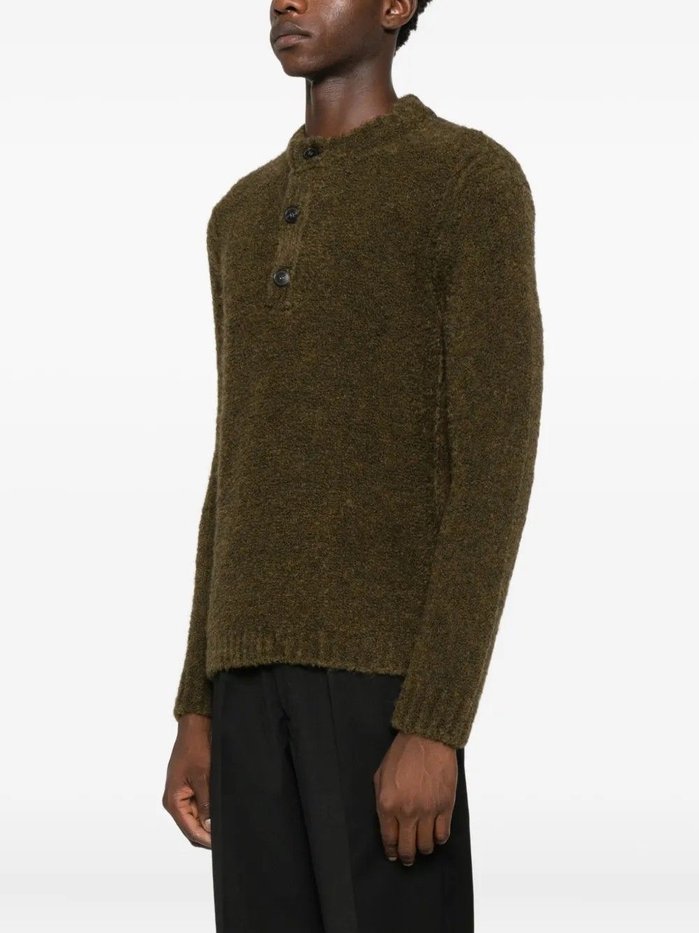 The Serafino sweater is crafted from bouclé fabric, offering a soft, textured surface with a distinctive look.The classic crewneck is paired with a buttoned placket for a refined yet minimal aesthetic.Long sleeves complete the clean silhouette with a relaxed and comfortable fit.The knitted construction provides warmth and lightness, ideal for colder seasons.A piece that blends function and personality with understated elegance.Perfect for layered outfits and polished casual looks.