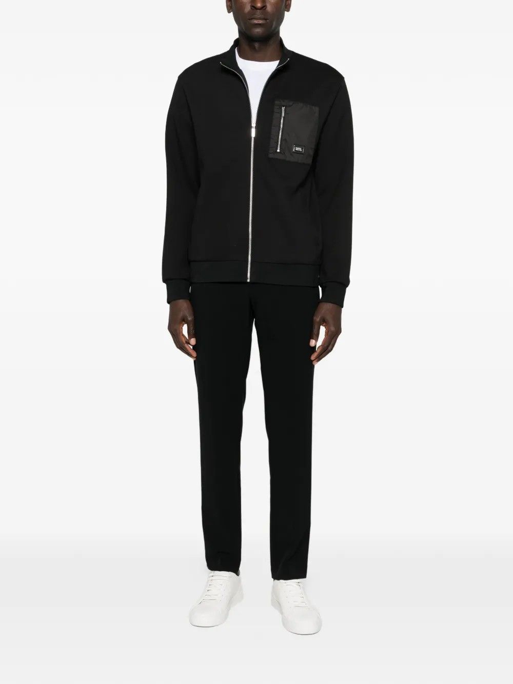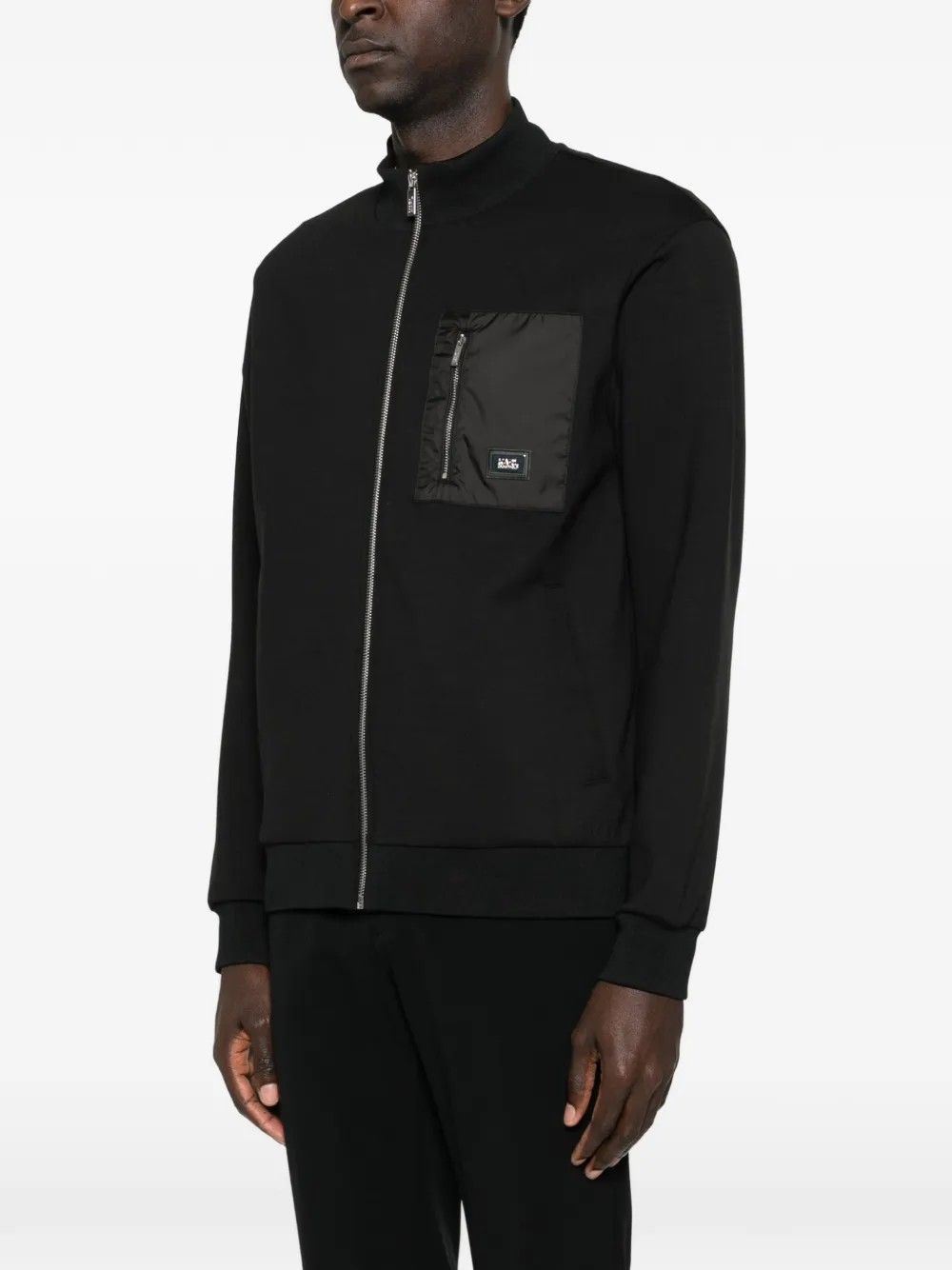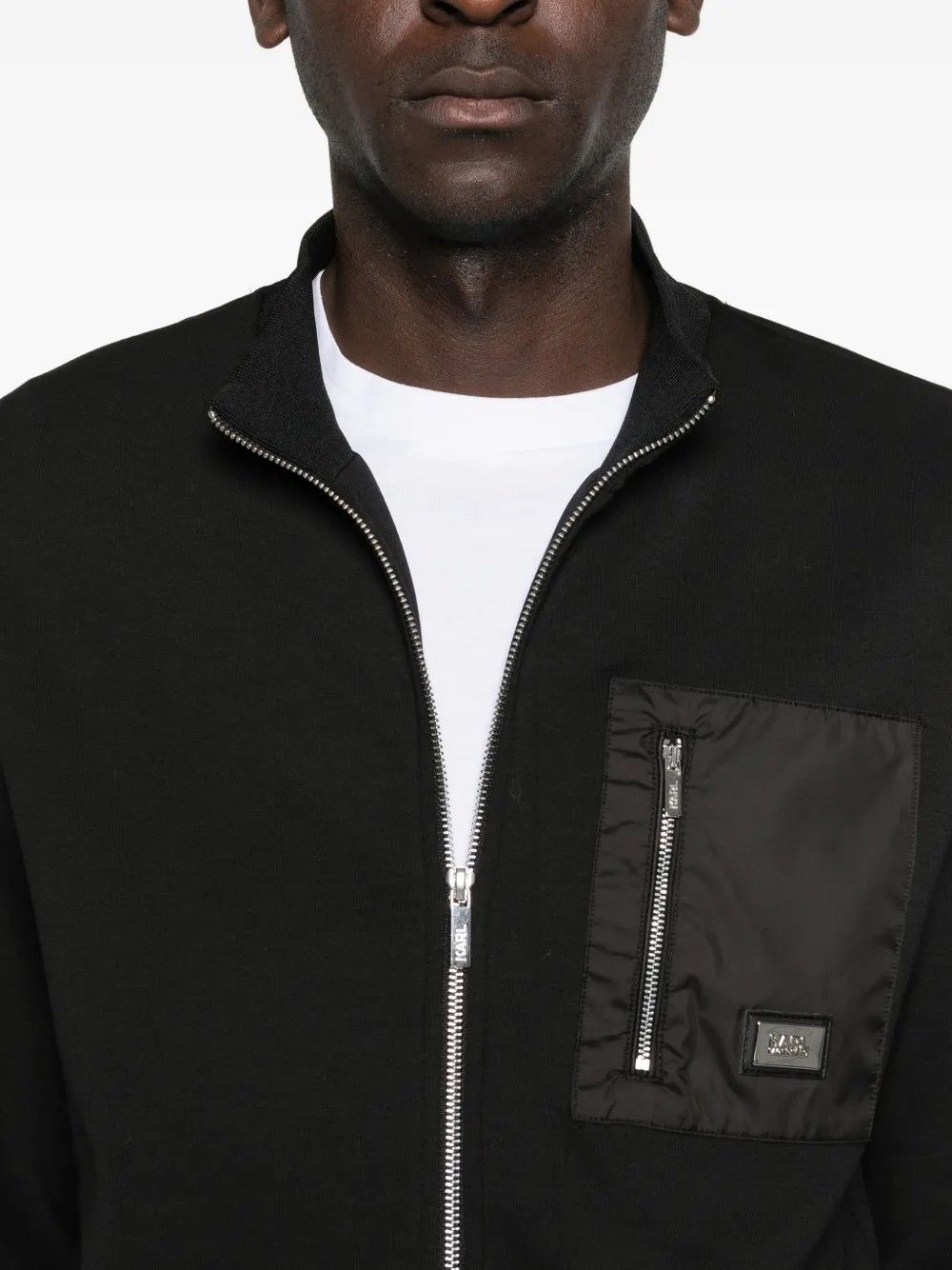 Discover the elegant men's knitwear by Karl Lagerfeld. This piece features a practical zip closure and a front zip pocket, ideal for a modern and functional look.