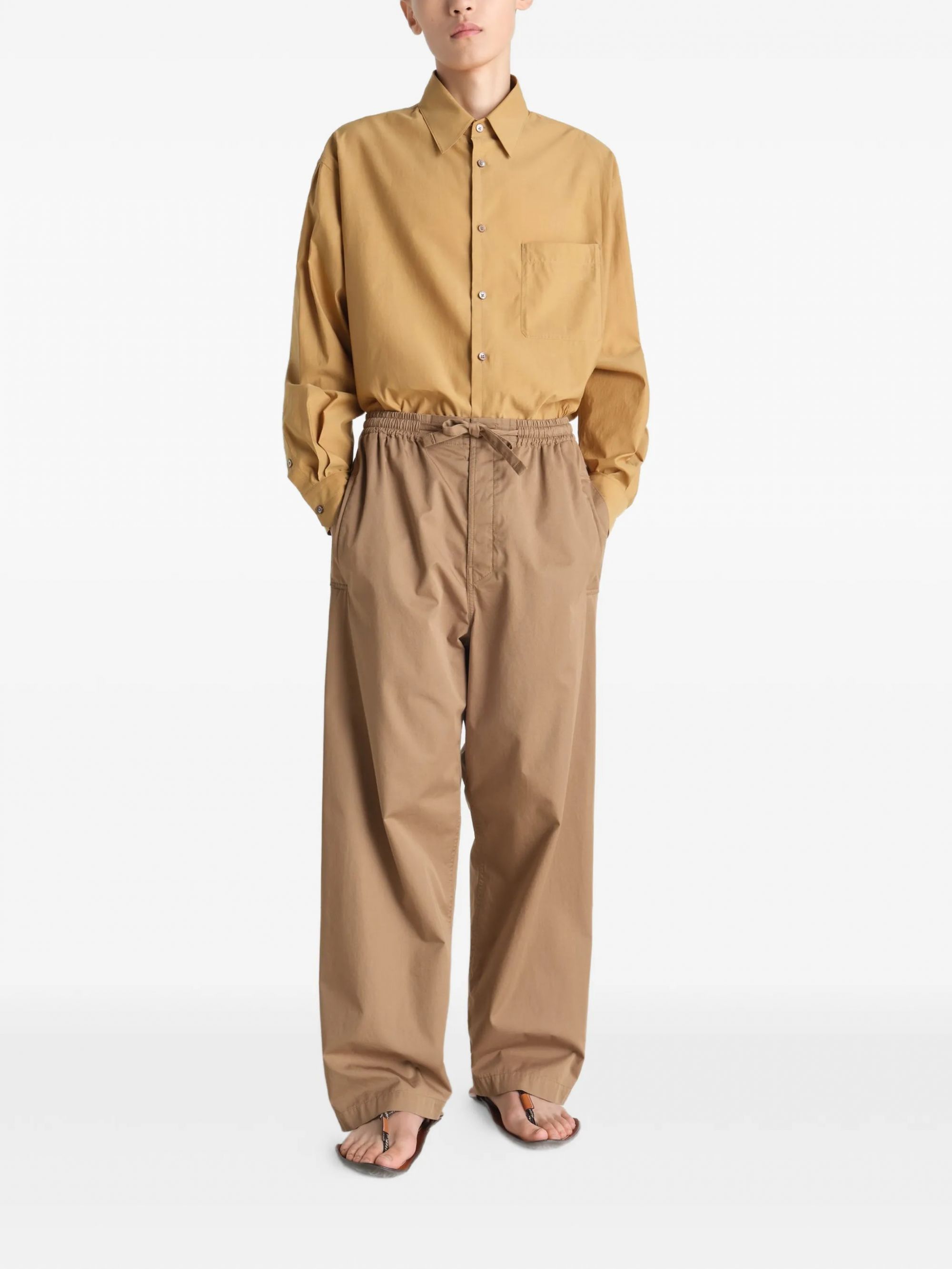 Discover Lemaire trousers, perfect for a sophisticated and comfortable style. Made from durable fabric, they offer a relaxed fit thanks to the wide-leg design and elastic waistband with adjustable drawstring.