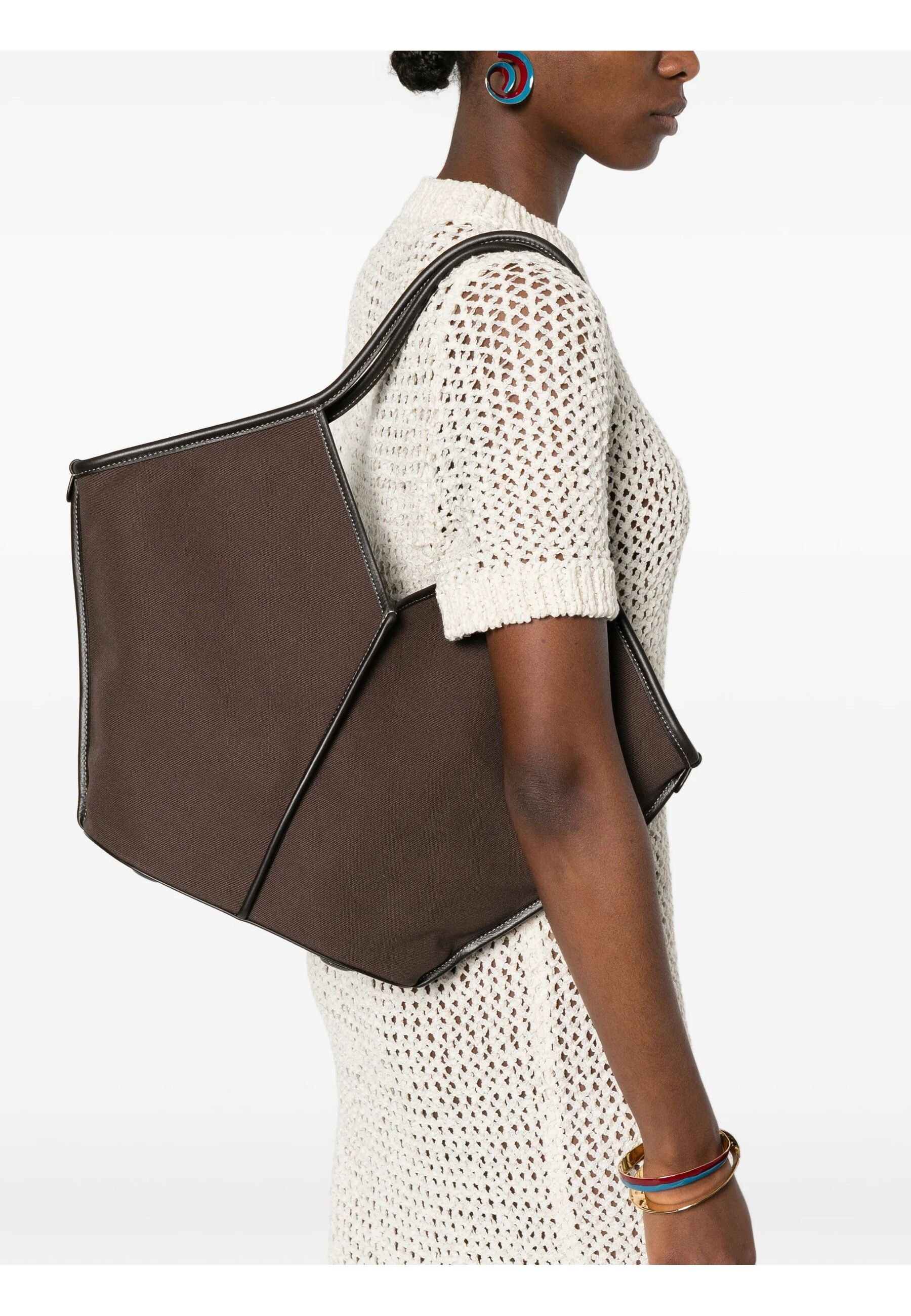 LEATHER TRIMMED CANVAS TOTE #DK BROWN