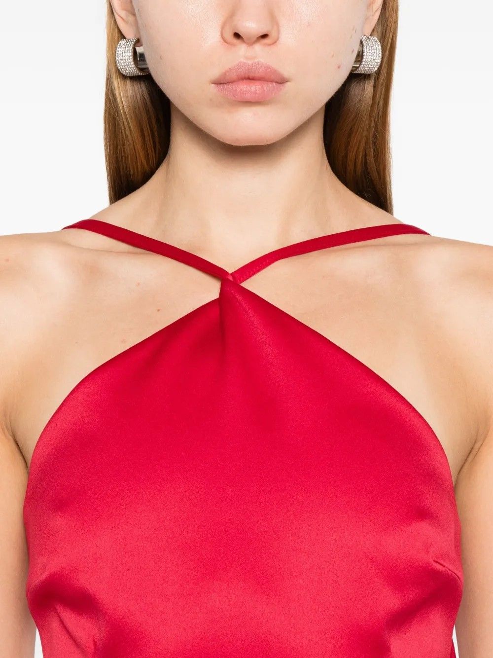 Explore the refined elegance of the OS46047 model by Solace London. This long dress in a vibrant red commands attention with its timeless design, perfect for special occasions or elegant evenings.