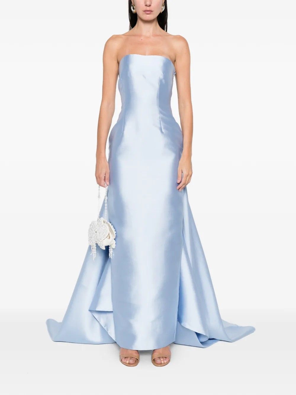 Experience timeless elegance with this Solace London mermaid dress. Crafted from high-quality satin, it features a sophisticated silhouette and a strapless design that beautifully highlights femininity. Perfect for gala evenings or formal events, its delicate draping adds a touch of class.