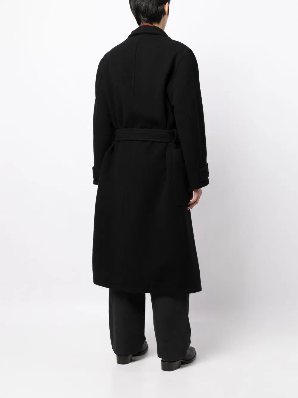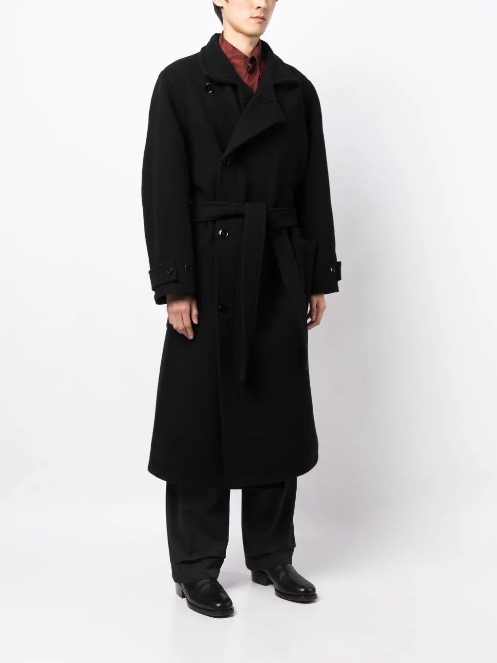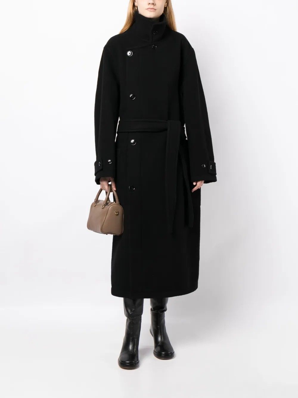 Long Lemaire coat in double faced wool with oversized cut.Unisex model with double breasted closure and stand up collar.Unlined structure with tailored details and herringbone trim.Patch pockets and removable belt for adjustable fit.Sleeve cuffs with tabs and inner strap for hand carry.Made of compact wool for refined and enveloping warmth.