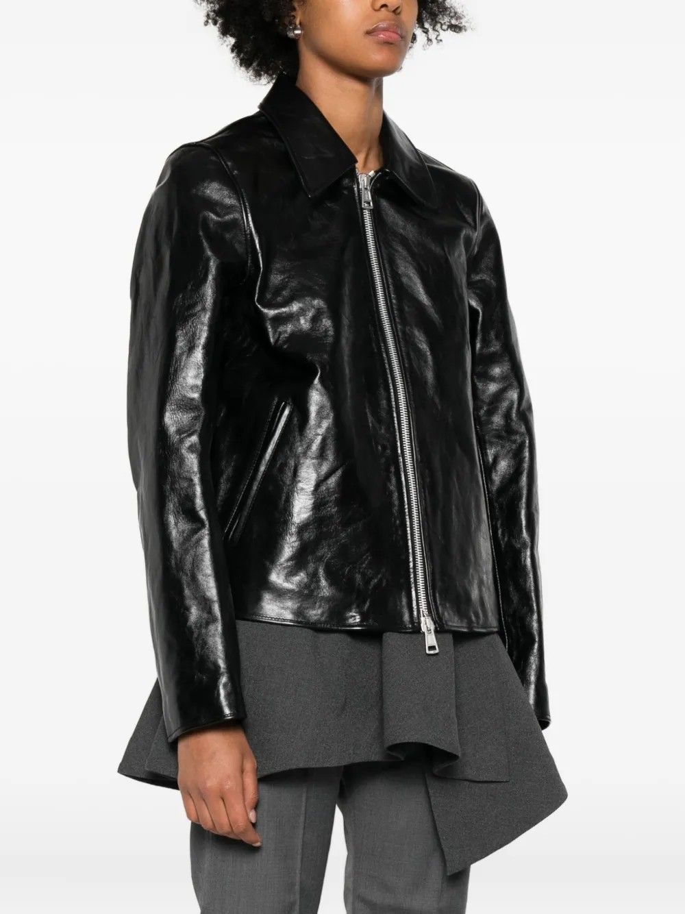 Explore the timeless sophistication of this black leather jacket by OUR LEGACY. With its chic and minimalist design, it’s the perfect piece for a modern, metropolitan look.