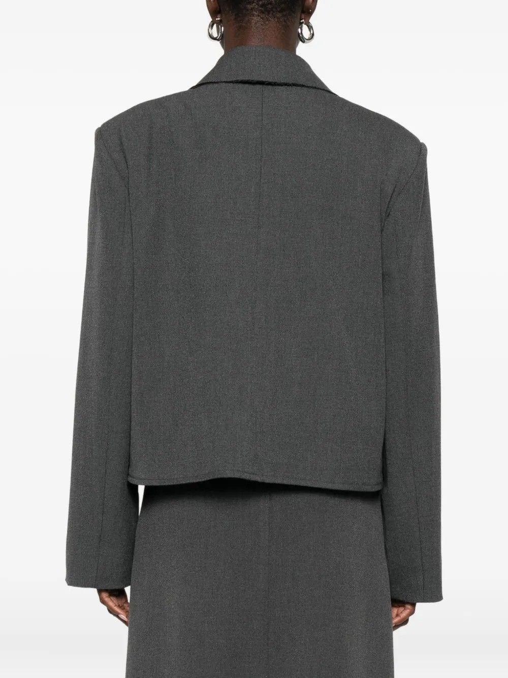 The Eleh cropped blazer inspired by modern design combines structure and versatility in a piece with a tailored soul.Clean lines and defined shoulders create a bold, contemporary silhouette, perfect to elevate casual or sophisticated looks.Made from fine fabric it pairs ideally with minimalist tops, contrasting dresses or high-waisted trousers for a refined, up-to-date style.