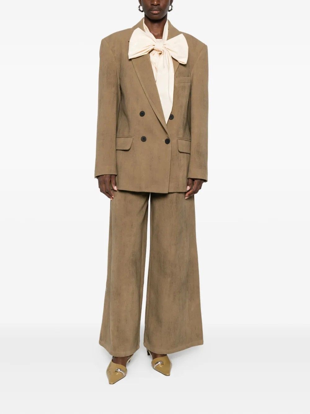 The Eleh blazer inspired by the classic double-breasted oversized style stands out with broad shoulders that create a bold, contemporary look.The tailored design is completed by matching trousers for a coordinated and refined outfit, perfect for those seeking elegance and modernity in one set.A versatile suit ideal for formal and professional occasions with style.