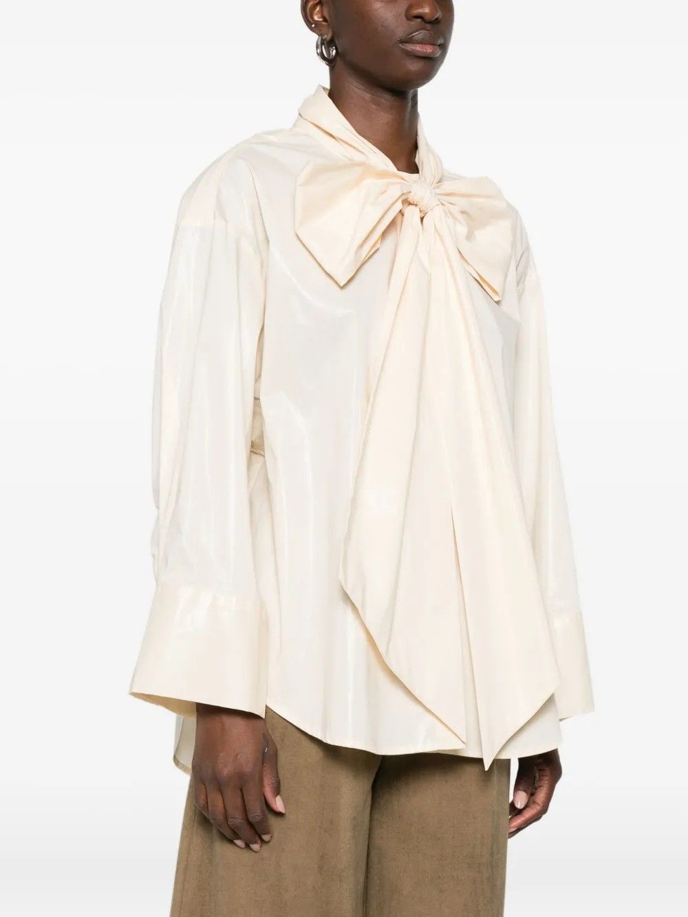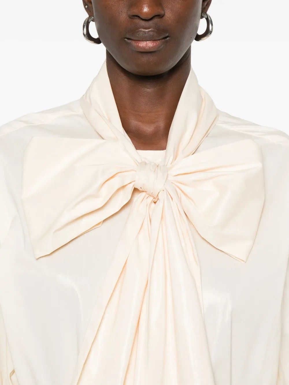The blouse features a bow detail that adds a feminine and sophisticated touch to the piece.Long sleeves close with buttoned cuffs while the curved hem flatters the silhouette.The cotton, polyester, and elastane blend ensures comfort and an optimal fit.An elegant and versatile model suitable for various occasions.
