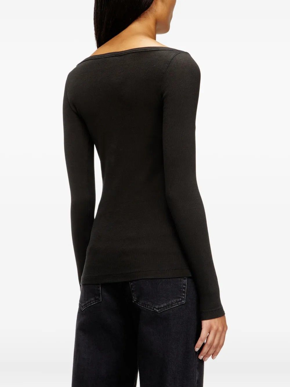 Discover the DIESEL long sleeve top, perfect for enhancing your wardrobe with unmistakable style. Featuring a minimalist design with a round neckline, it offers a versatile and fashionable look.