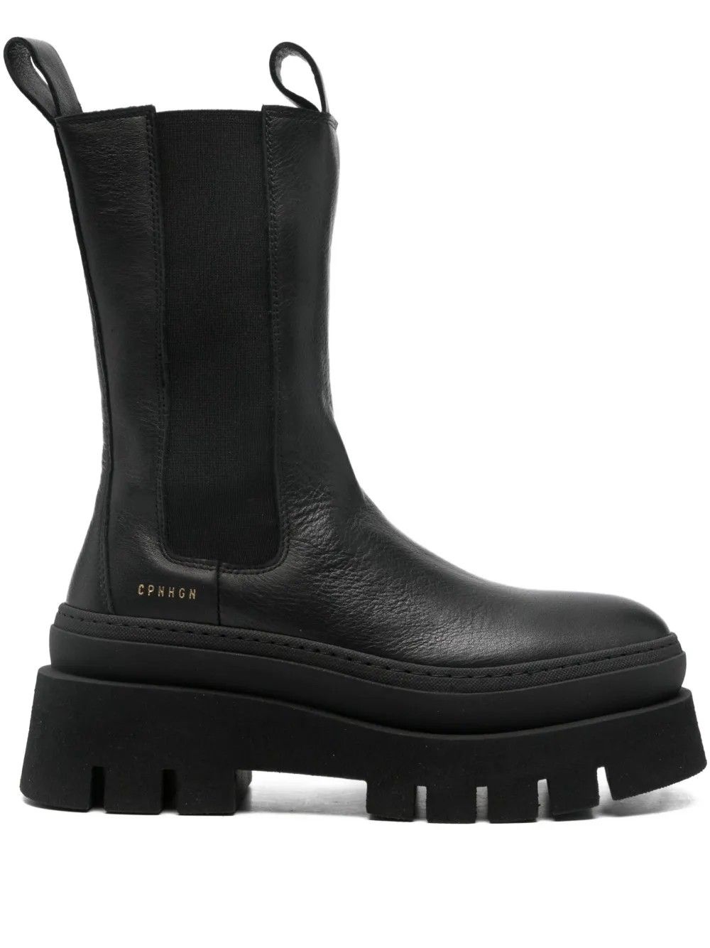 Mid-height Chelsea boots crafted from smooth, soft leather.Sturdy silhouette featuring elastic inserts with embroidered details.Pull tabs on the shaft for easy wear.Discreet gold-tone logo on the side.Rounded toe and platform sole with distinctive profile.Block heel offers the perfect blend of style and comfort.