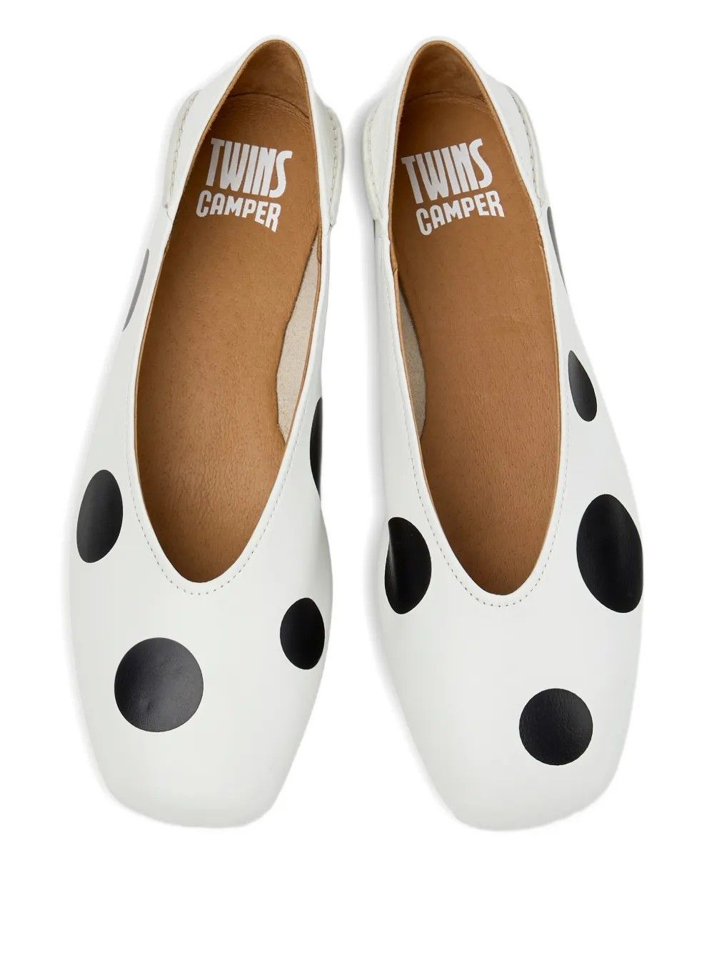 Discover Camper ballerinas, featuring a charming polka dot pattern that adds a touch of personality to your everyday style. Made from soft leather and equipped with a rubber sole, they offer comfort and durability with every step.