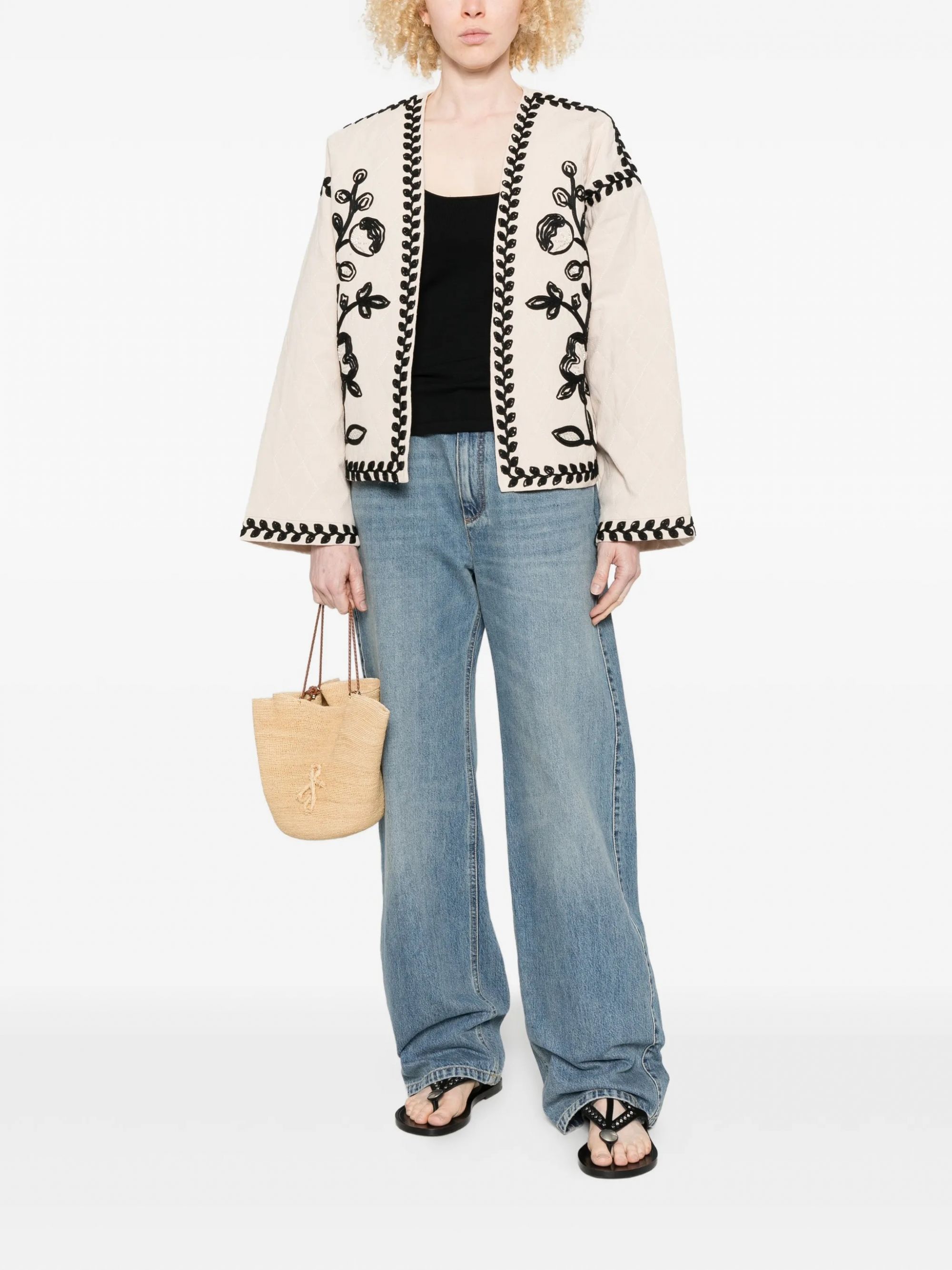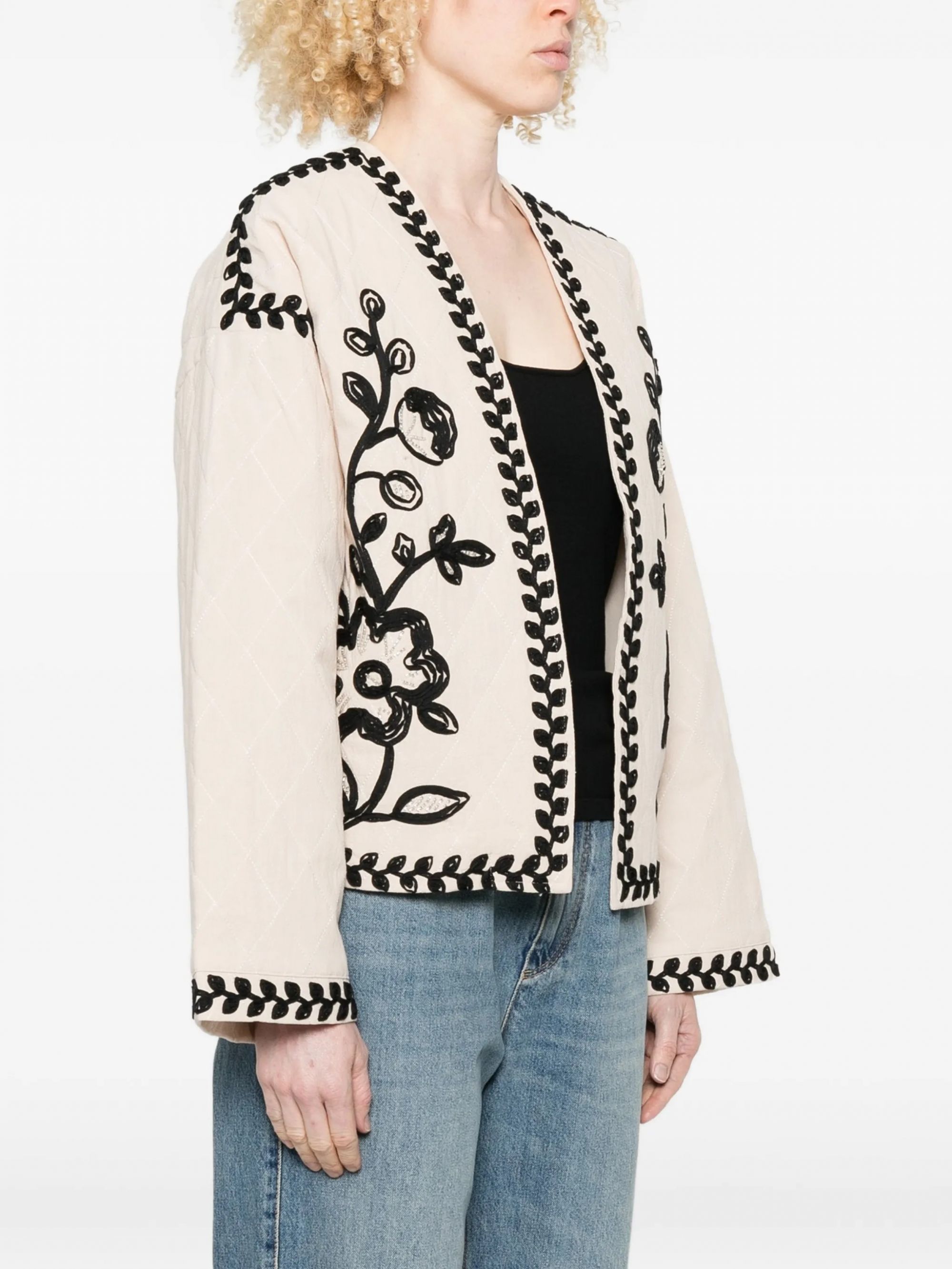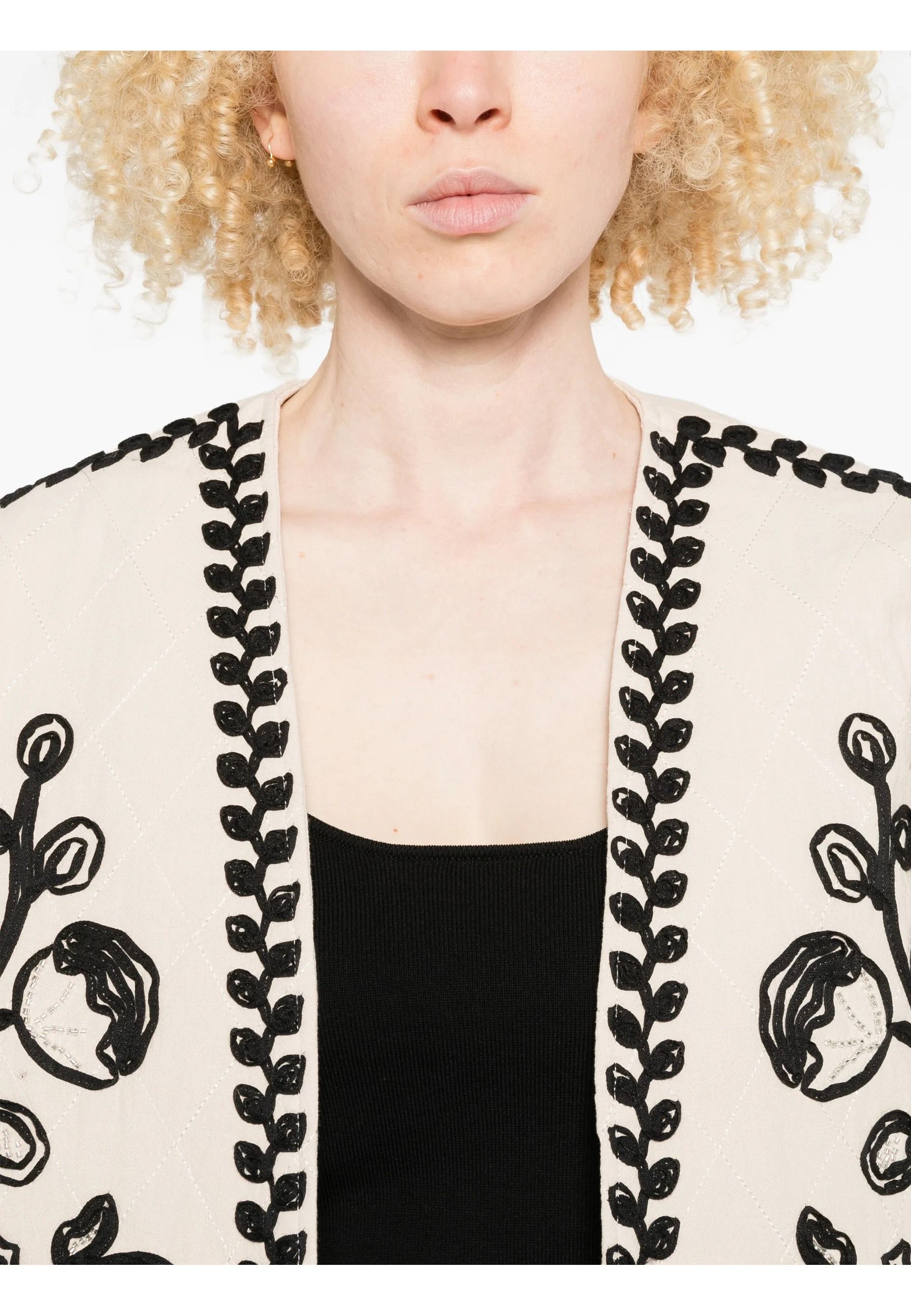 Scopri l'elegante capospalla di PHILIA LOFT, un capo unico che valorizzerà il tuo guardaroba. Questo modello è caratterizzato da un intricato ricamo floreale in contrasto, perfetto per aggiungere un tocco di sofisticatezza al tuo outfit quotidiano.
