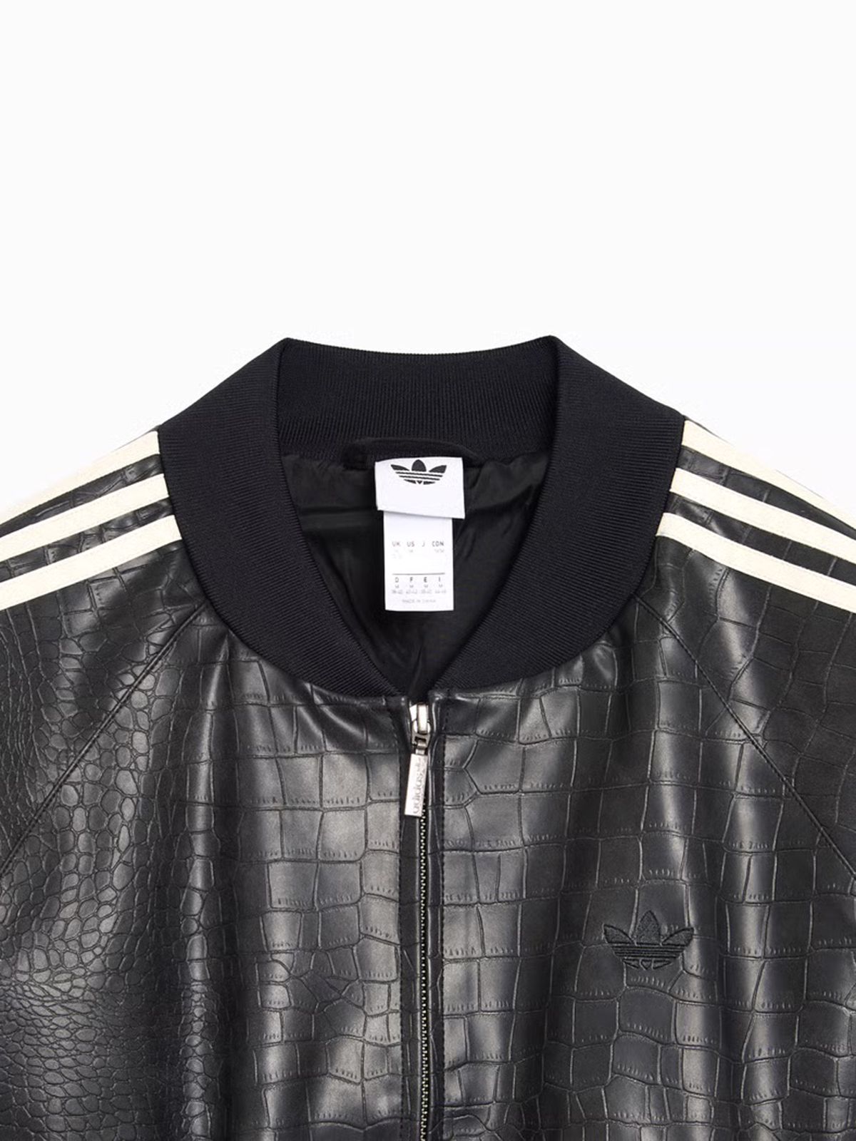 Questa giacca in ecopelle firmata Adidas Originals è l'aggiunta perfetta al tuo guardaroba urbano. Il design presenta le classiche tre strisce lungo le maniche, creando un look sportivo e di tendenza.
