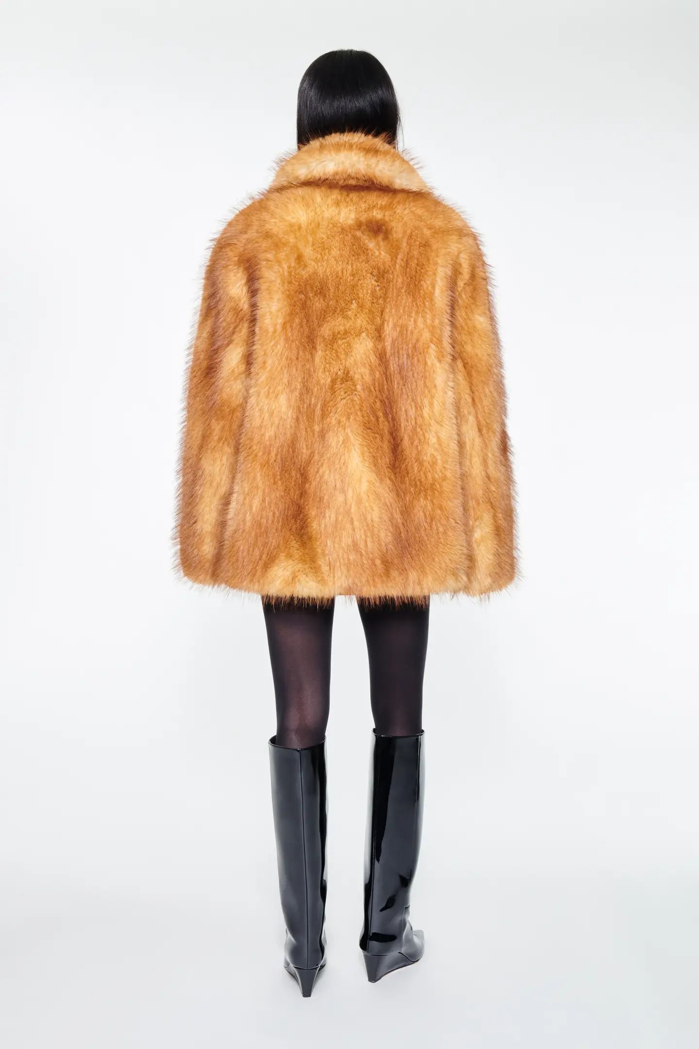 Il cappotto corto in pelliccia sintetica di Stand Studio è un capo elegante e sofisticato, realizzato in un materiale estremamente morbido al tatto che offre un comfort superiore. Con un taglio dritto che garantisce libertà di movimento, questo modello è ideale per chi cerca sia stile che praticità. La chiusura con gancetti e lo strato aggiuntivo di fodera assicurano una vestibilità confortevole, mentre le due tasche laterali a taglio offrono funzionalità. Il design è completato da revers a punta e polsini tagliati, con linea spalle abbassata, che permettono ancora maggiore libertà di movimento. Un cappotto versatile e raffinato, perfetto per ogni occasione.