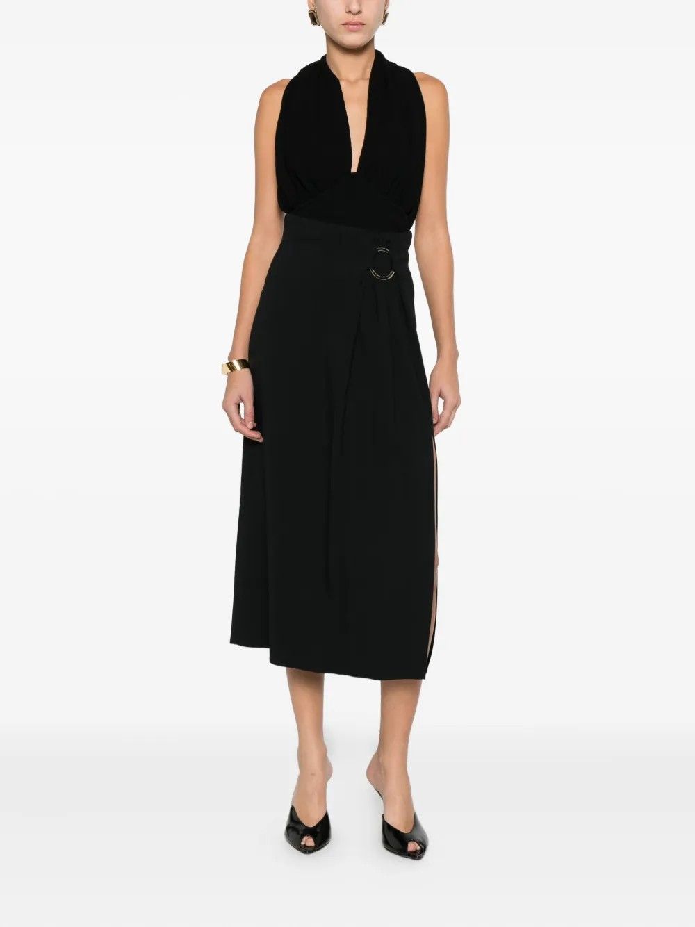 Gonna midi Carla G realizzata in crepe di viscosa elasticizzato con vestibilità morbida e silhouette fluida.Il design femminile è valorizzato da un dettaglio in vita con arricciatura fermata da un anello metallico.La linea pulita e la lunghezza midi la rendono perfetta per look eleganti e versatili.Un capo raffinato pensato per esaltare la figura con comfort e leggerezza.