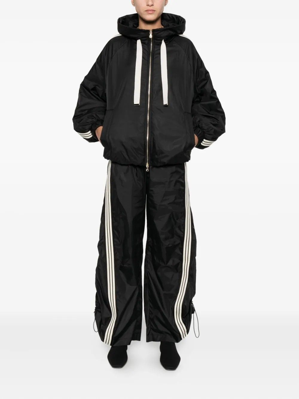 Pantaloni palazzo Carla G dal fit morbido e confortevole, caratterizzati da una banda laterale che aggiunge un tocco sportivo alla linea elegante.La silhouette ampia e fluida li rende ideali per look casual-chic e dinamici.Un capo versatile pensato per chi cerca comodità senza rinunciare allo stile.