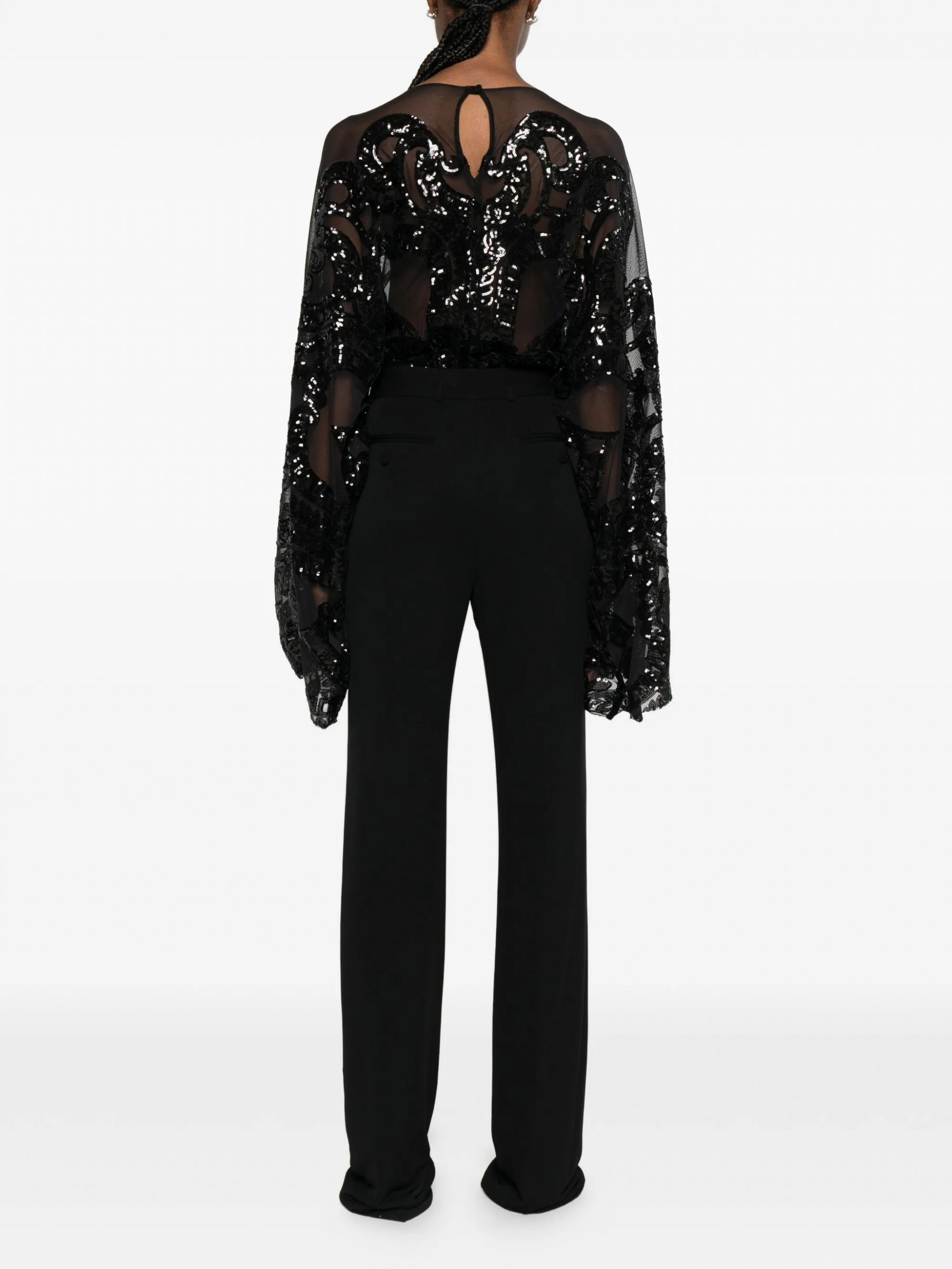 REVERSE OBIE BODYSUIT W/LONG SLEEVE #BLACK