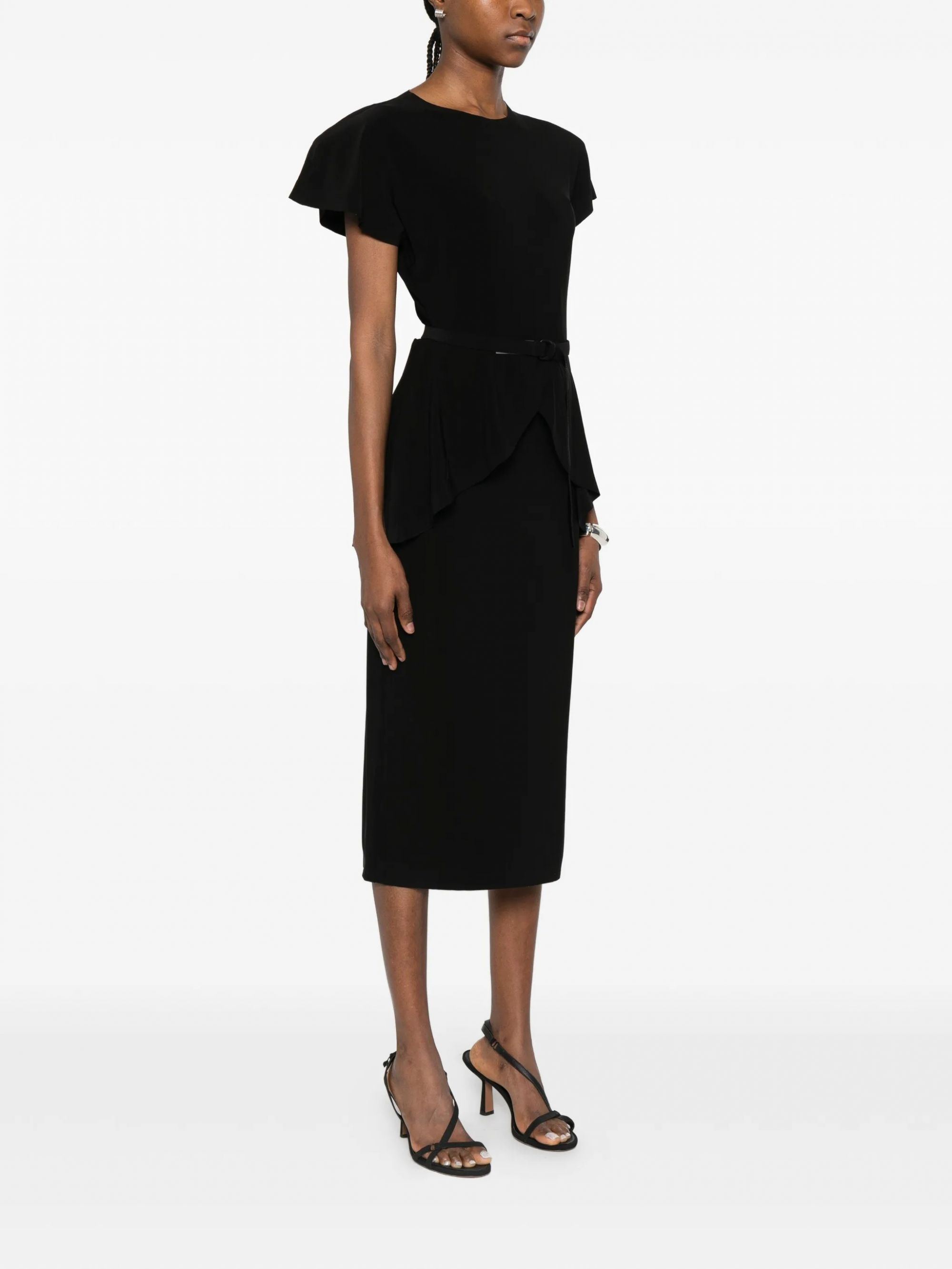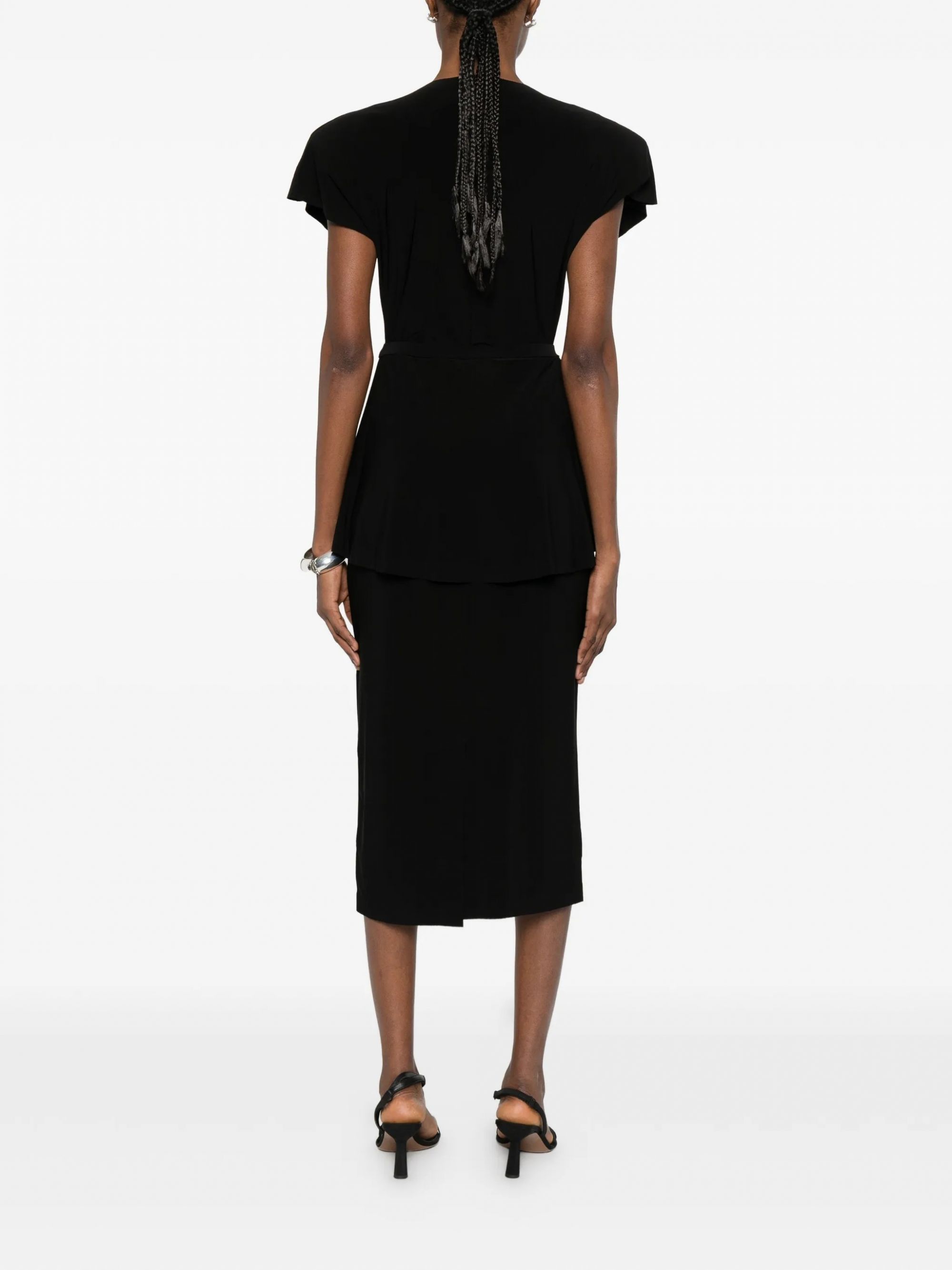 CAP SLEEVE SHOULDER PAD PEPLUM DRESS TO MIDCALF #BLACK
