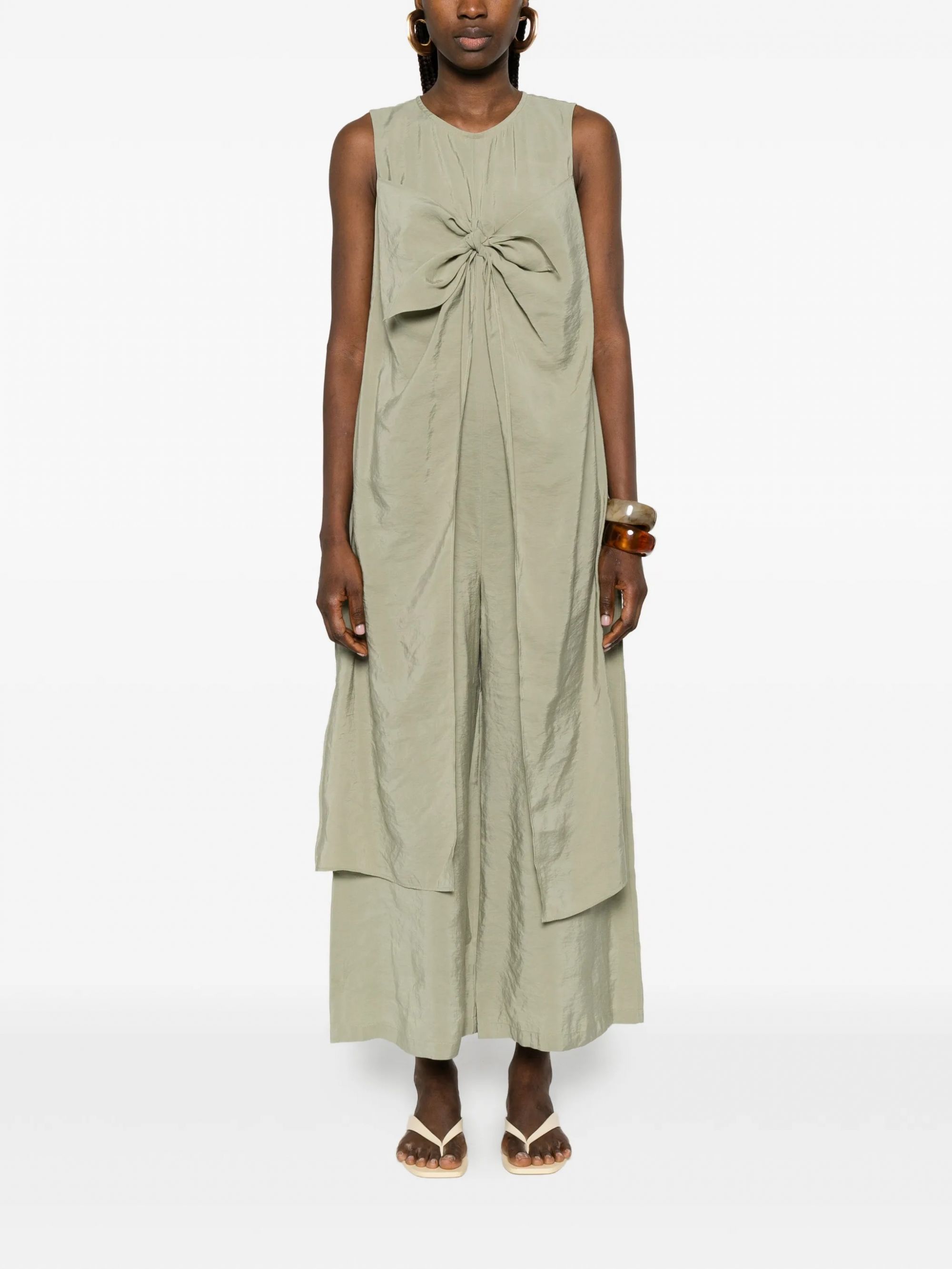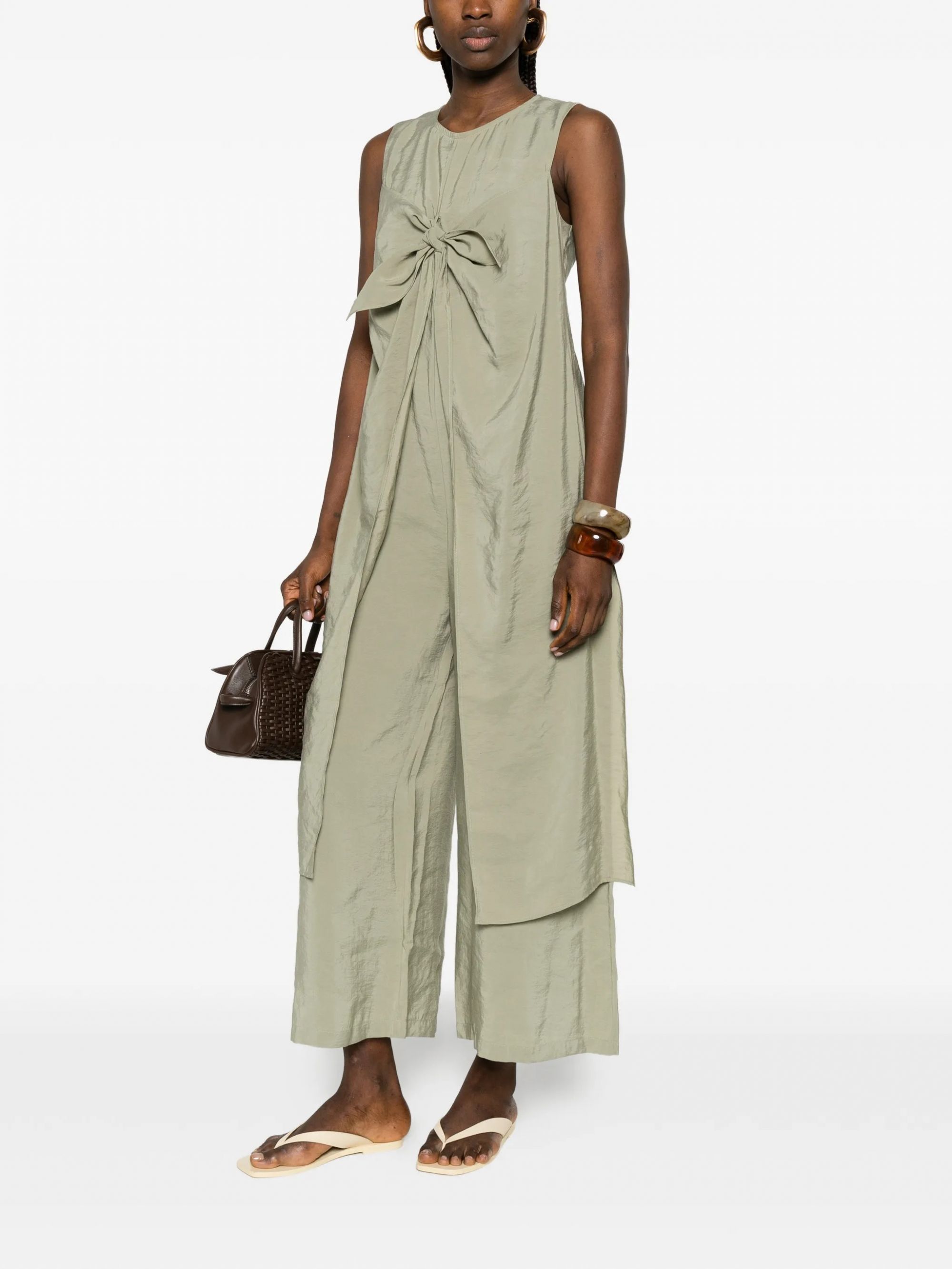 Scopri la tuta elegante di BRAND SU, un capo dal design versatile che unisce moda e comfort. Perfetta per ogni occasione, questa tuta è caratterizzata da un raffinato dettaglio centrale annodato, senza maniche e con una vestibilità morbida.