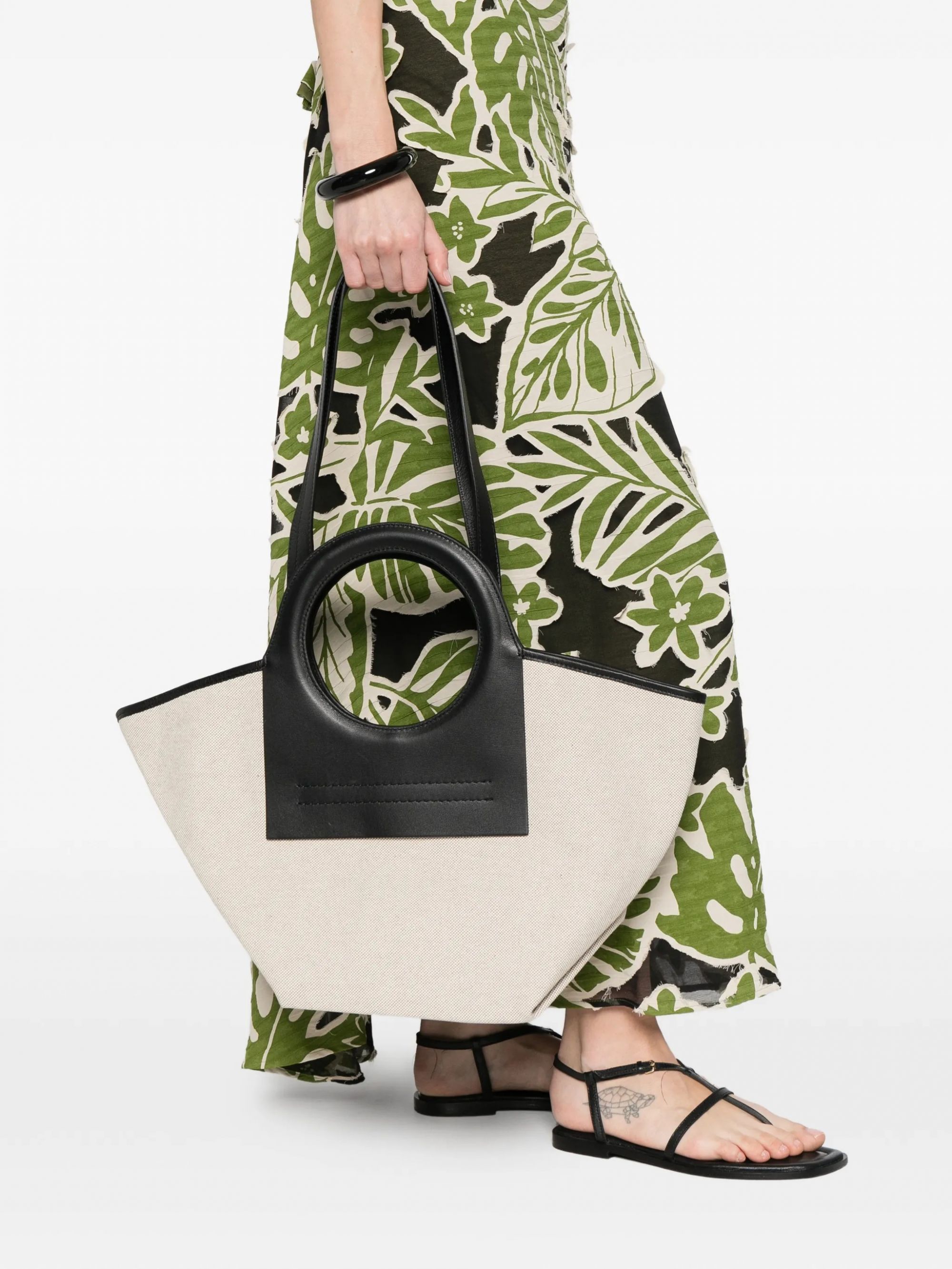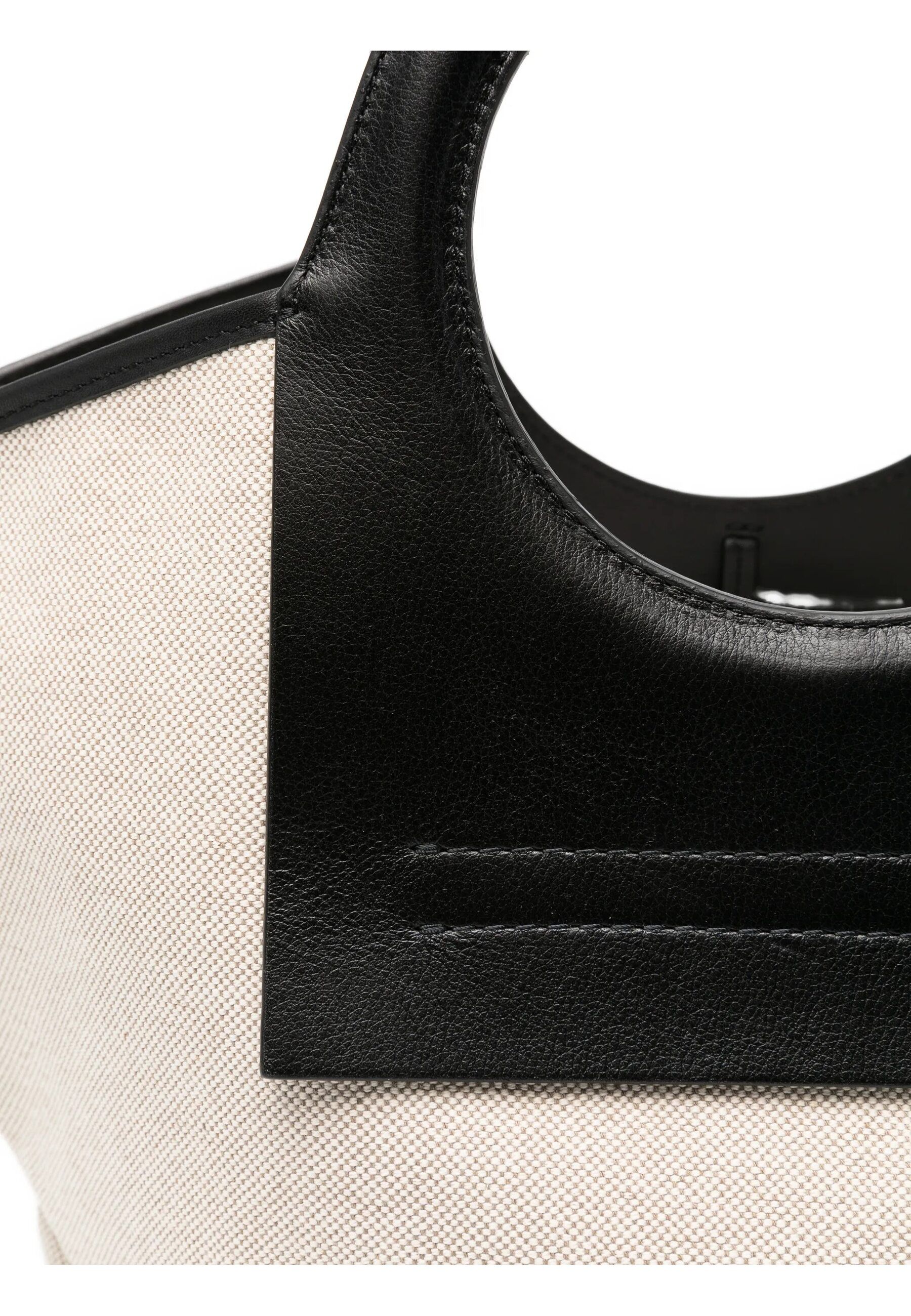 CANVAS TOTE BAG LEATHER STRAP #BEIGE/BLACK