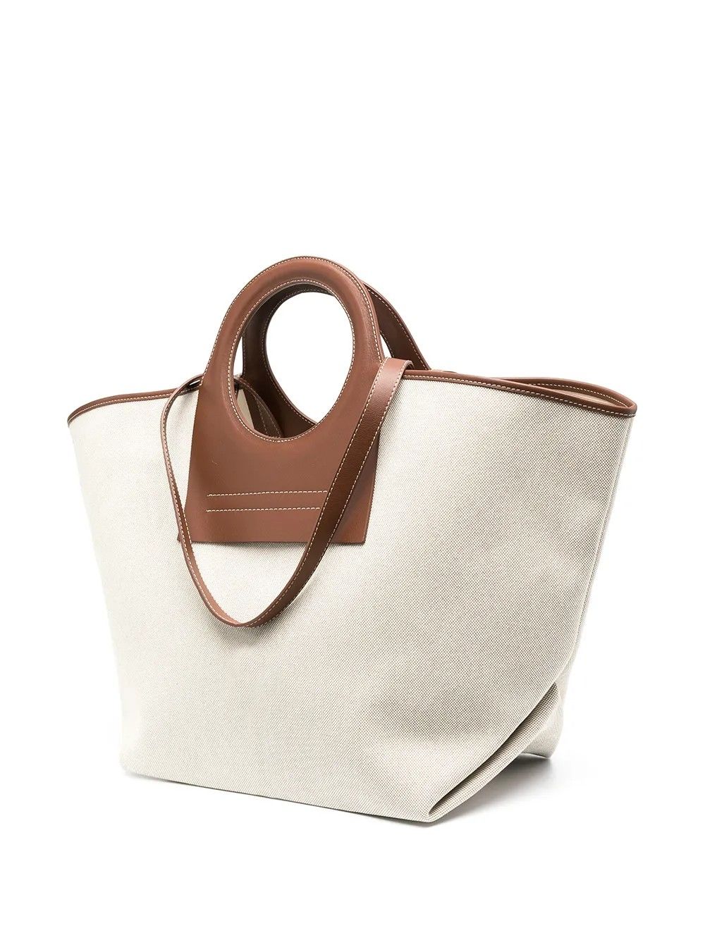 CANVAS TOTE BAG LEATHER STRAP #BEIGE/CHESTNUT