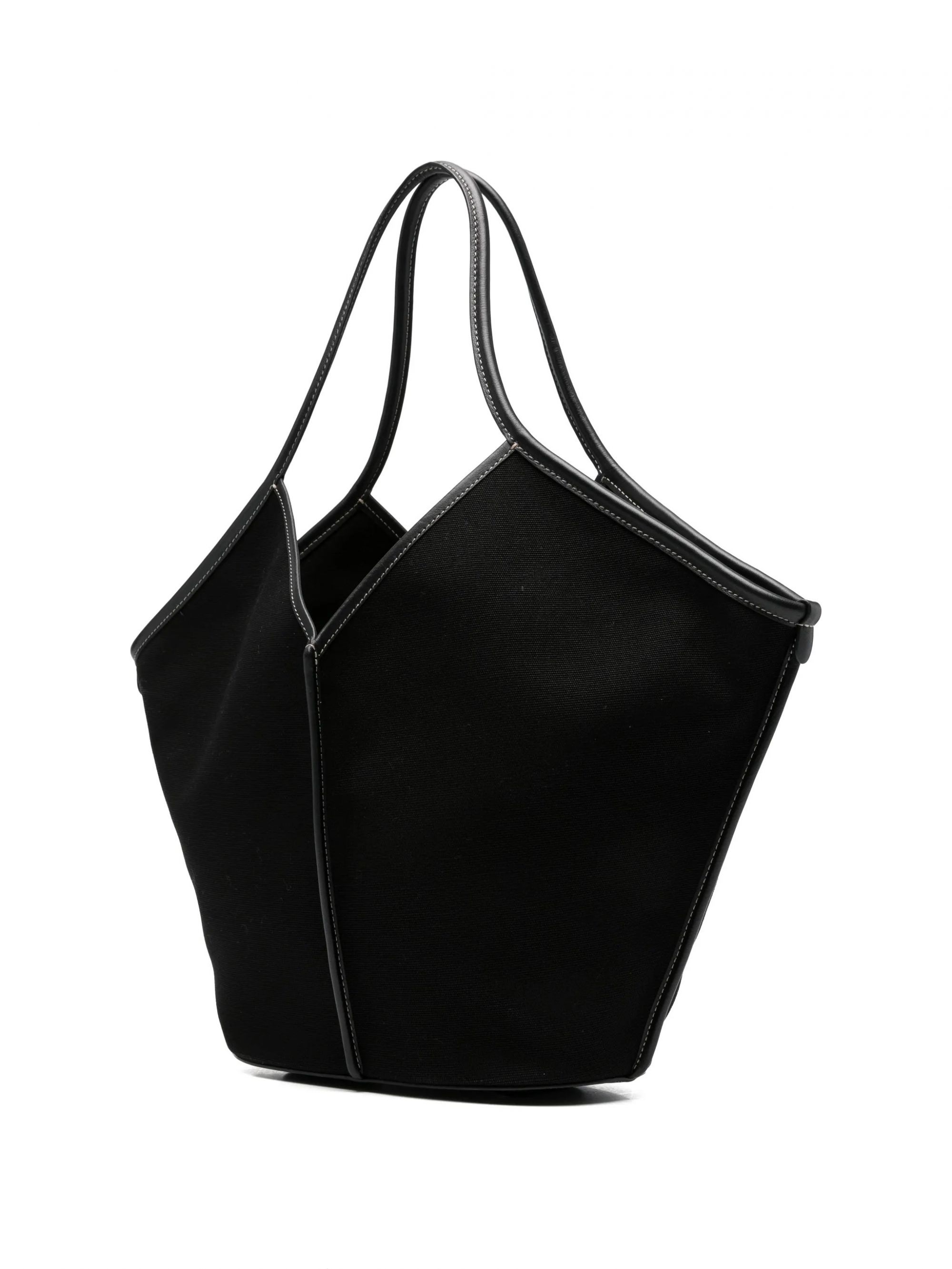 LEATHER TRIMMED CANVAS TOTE #BLACK