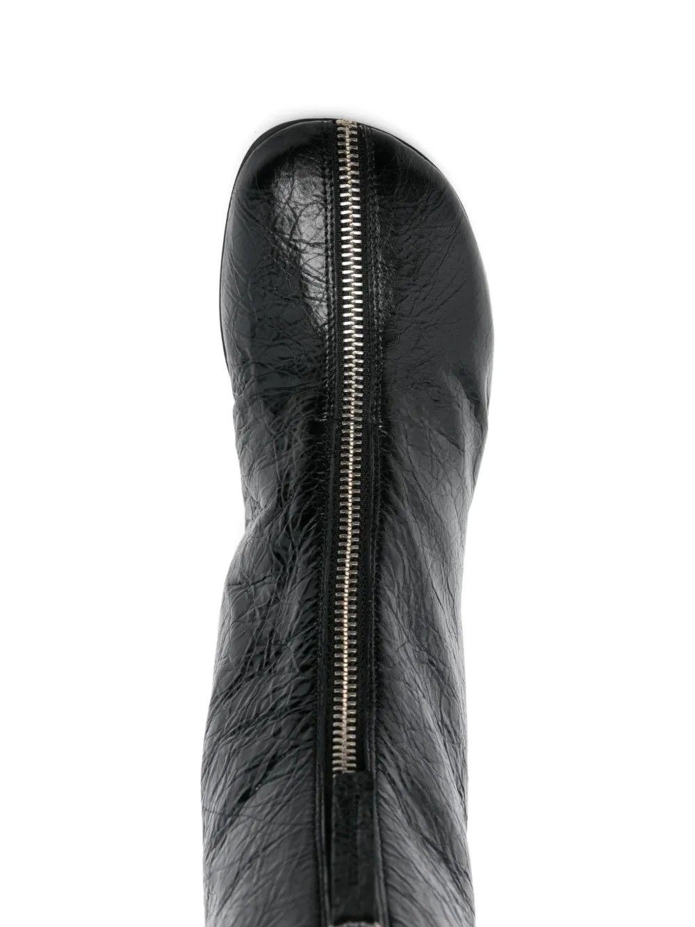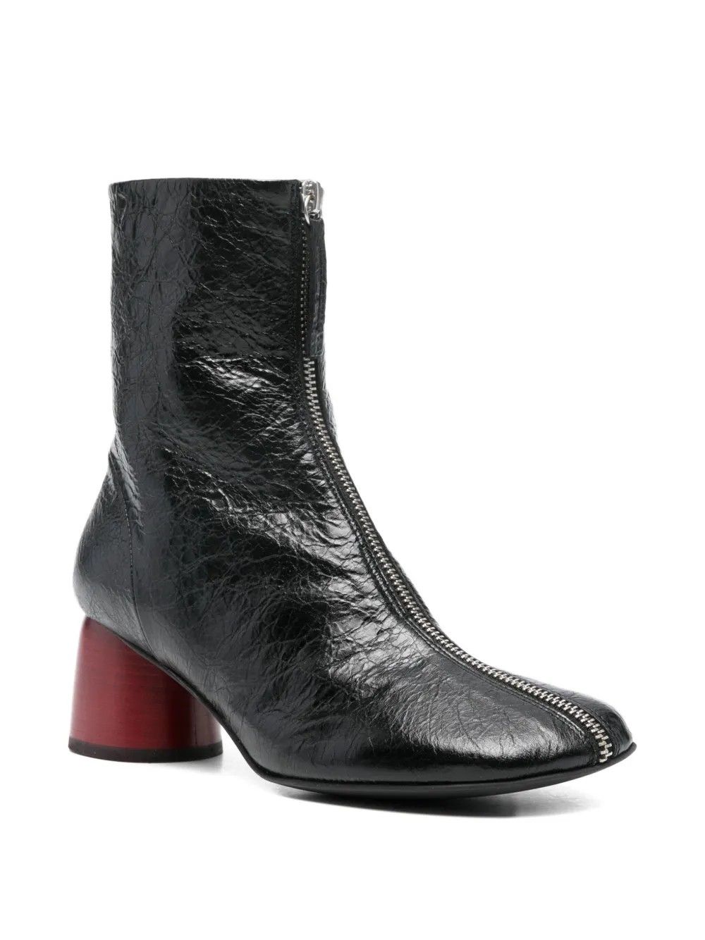 Stivaletto Halmanera in pelle lucida dal design essenziale e contemporaneo con zip frontale che ne esalta la linea decisa.Il tacco a contrasto dona un tocco grafico inaspettato aggiungendo carattere alla silhouette minimalista.La forma affusolata valorizza la calzata con eleganza e precisione.Realizzato con materiali pregiati combina artigianalità e stile distintivo.La costruzione solida assicura comfort e stabilità a ogni passo.L’equilibrio tra dettagli moderni e finiture ricercate definisce un’estetica audace e sofisticata.