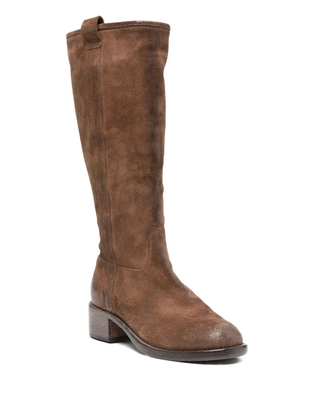 Stivali Moma alti fino al ginocchio in pelle pregiata con tacco largo in pelle di vitello.Modello slip-on dotato di pratici tiranti laterali per facilitare la calzata.Punta tonda che assicura comfort e stile raffinato.Fodera in tessuto traspirante e suola in pelle di vitello per una calzata confortevole e resistente.Un classico versatile e di alta qualità, perfetto per look eleganti e quotidiani.