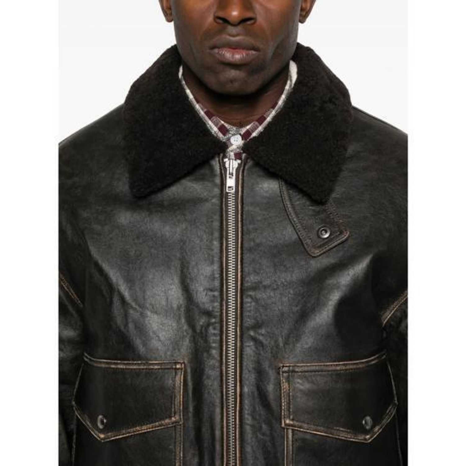 UNISEX A-2 SHEARLING COLLARED LEATHER JACKET #BRUSHED BROWN