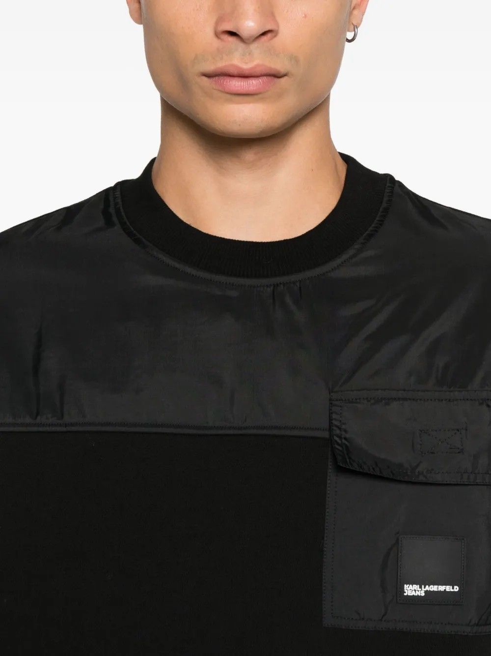 La felpa Karl Lagerfeld Jeans si distingue per il design a pannelli che crea un effetto moderno e dinamico.Realizzata in un mix di poliammide e cotone, offre una sensazione di comfort e resistenza.Il modello presenta collo rotondo, maniche lunghe, taschino sul petto e fondo con bordi a costine che assicurano una vestibilità aderente.La combinazione di materiali garantisce traspirabilità e struttura al capo.Un capo versatile e contemporaneo, perfetto per completare look casual con un tocco di stile urbano.Funzionalità e design si fondono in questa felpa dal carattere deciso.
